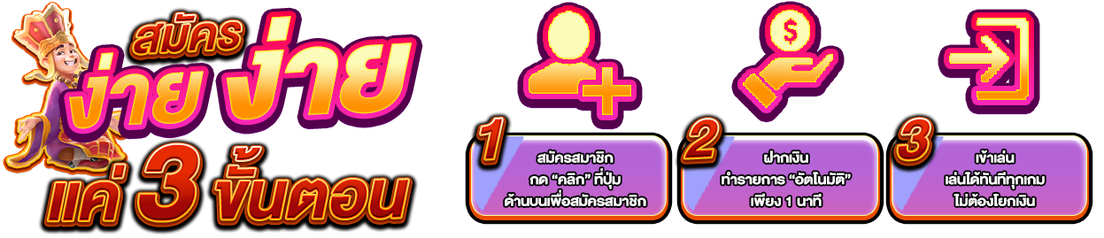 ตอบ : สมัครง่ายผ่านหน้าเว็บไซต์ กรอกข้อมูลส่วนตัว เบอร์โทรศัพท์ บัญชีธนาคาร รอยืนยันผ่าน SMS ใช้เวลาไม่เกิน 3 นาที